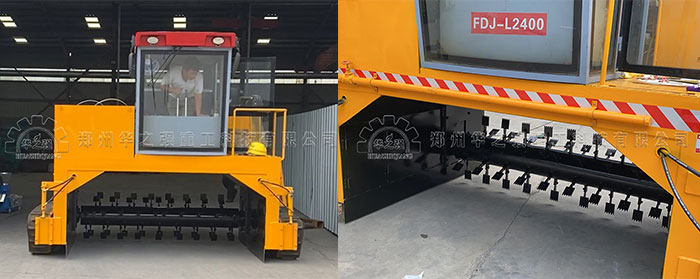 1.翻拋滾筒油左右兩段方向螺旋和中間直線拋遲組成,旋轉的螺旋滾筒將三角形條垛物料向中間收攏,同時隨著滾筒旋轉使物料向後翻拋,從而實現頂層物料和內部物料充分混合,物料和氧氣充分接觸,堆垛內熱氣曝出。從而實現物料混合、通風、曝氣、翻拋,達到堆肥發酵的目的。